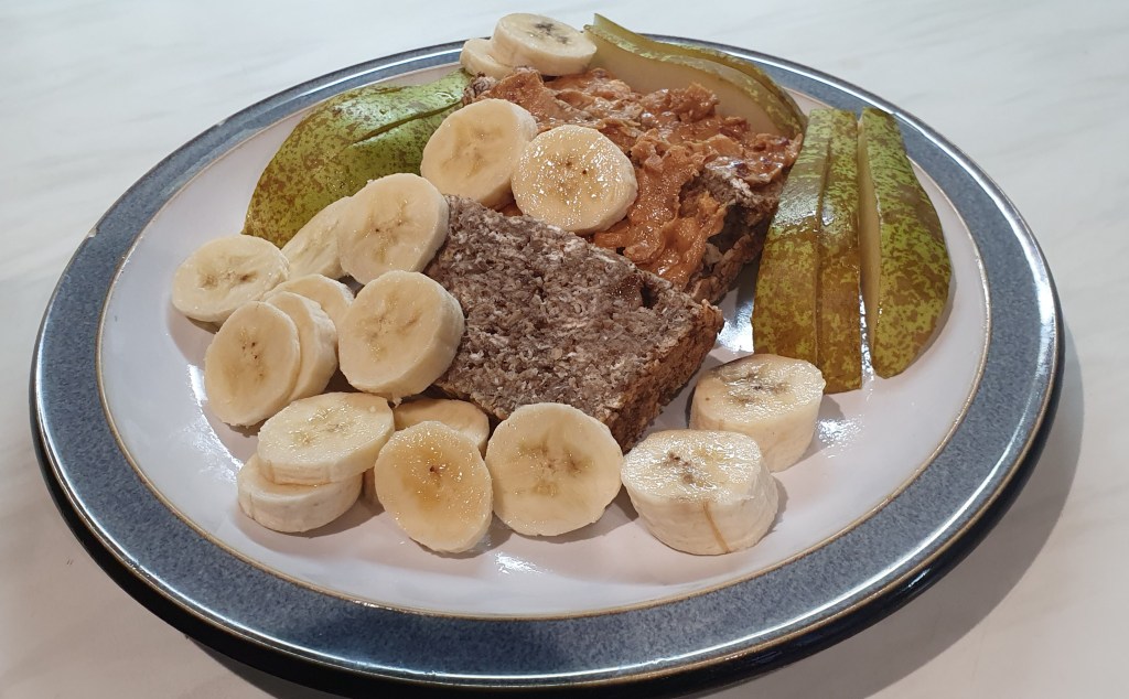That’s it – very simple. Leave it in the tin to cool and then it’s ready to slice and eat. It’s lovely with some peanut butter, extra fruit or some yoghurt.